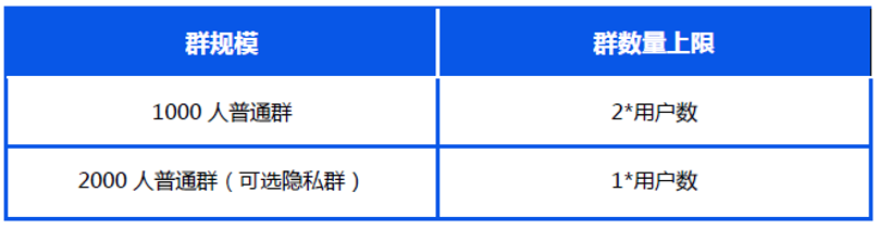注:1.同一企业下,计算每企业可拥有群上限时,在线客服与协同的用户数需叠加计算