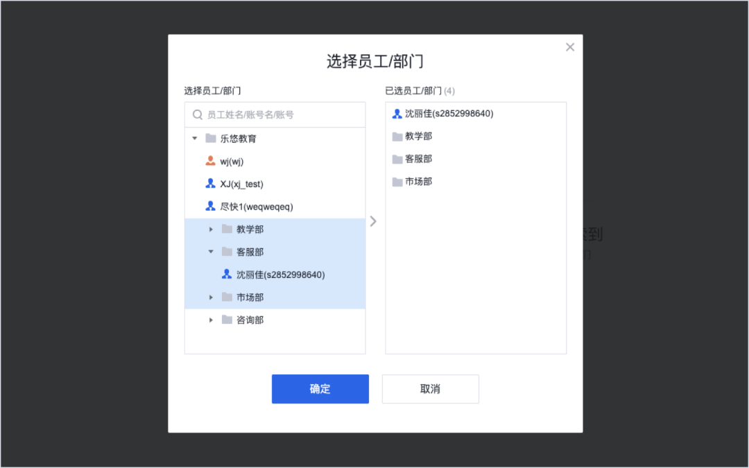 配置入口:账户中心-「企业管理」-「组织架构」-「员工资料/权限」