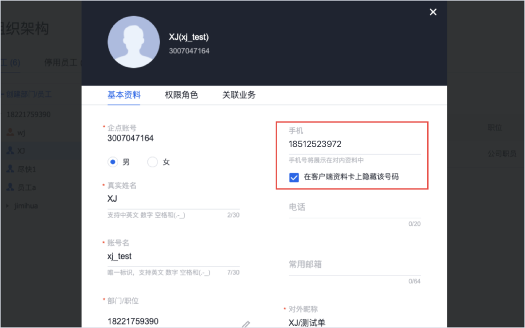 为了防止员工私人信息外漏被骚扰,客服管理员可以选择在客户端资料卡上隐藏员工的手机号码,保护客服人员的信息安全,从手机号隐藏开始。