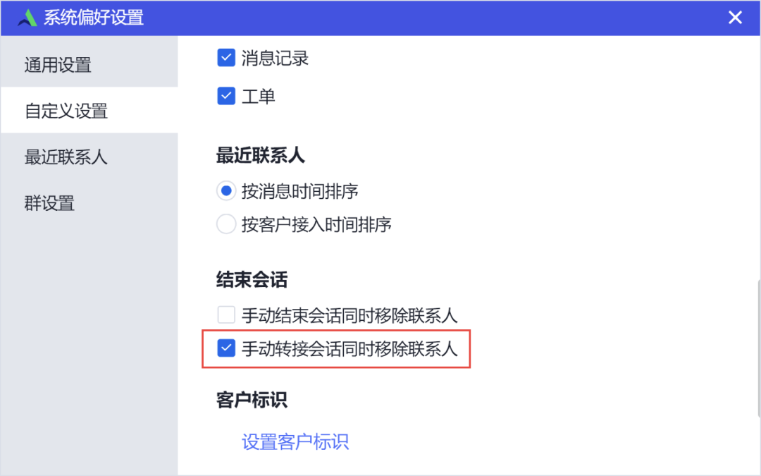 客户转接后会话窗口还要手动关闭,效率低?企点君向你推荐3.6快速结束此类会话的能力,只需在工作台系统设置内勾选“手动转接会话同时移除联系人”,就可以让已经流转的会话结束地更干脆一点。