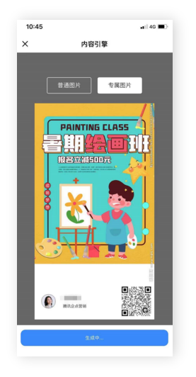 销售员工在查看内容素材的图片素材时,可以快速下载带有当前销售员工的信息的图片海报,并支持快速下载到本地,方便销售员工进行其他渠道方式传播及引流。